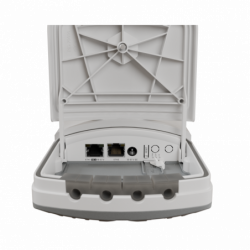 Point d’accès Wi‑Fi 6 IP66 étanche aux intempéries avec modem LTE CAT7, radios bi‑bande 2x2 MIMO, deux ports Ethernet Gigabit et RouterOS v7 pour des installations extérieures/maison/sites isolés.